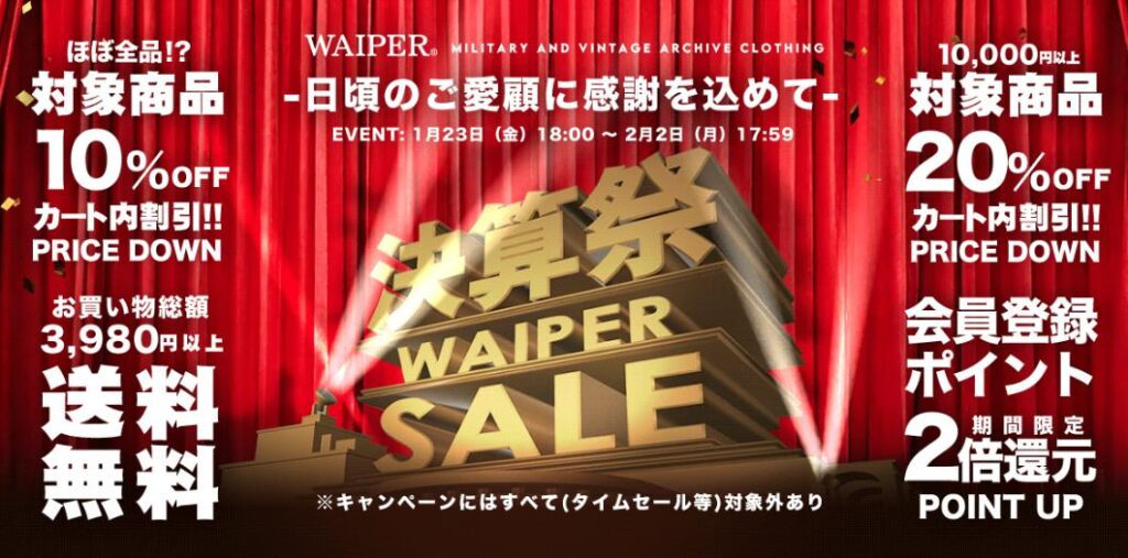本格派ミリタリーセレクトショップ【WAIPER/ワイパー】は、数ある軍物アイテムの中でも他店には無い独自の視点で選び抜かれた商品揃え。